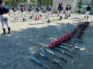 今日も暑い中、体調管理をしながら頑張りました。準備の大切さを話し、道具をキレイに並べる取り組みを始めました。新チームになって一つずつ積み重ねていきます!