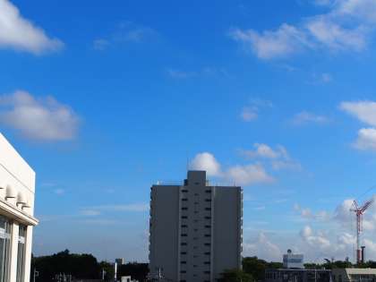 今朝も暑い夏空…と思っていたら、北側校舎の窓を開けると、秋の気配が感じられた今朝のフナキボです。そういえば、心なしか雲にも秋の雰囲気が感じられます。