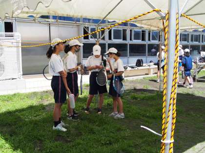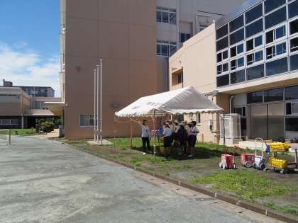 昨日できたばかりのテントに今日、主事さんがミスト装置を付けてくださいました。さっそく休憩の時に恩恵を受けます。かなりの清涼感です!