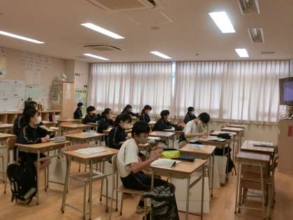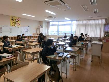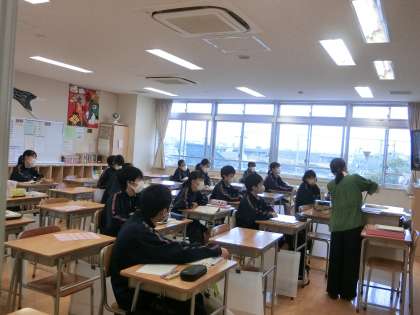 戦争に関する本の説明をどのクラスも真剣に聴いていました。(水巻)