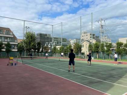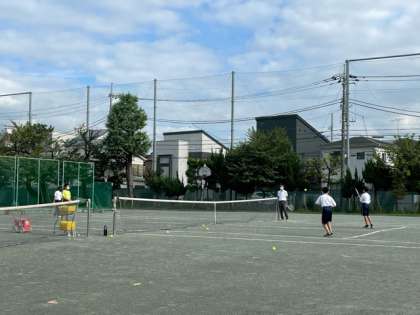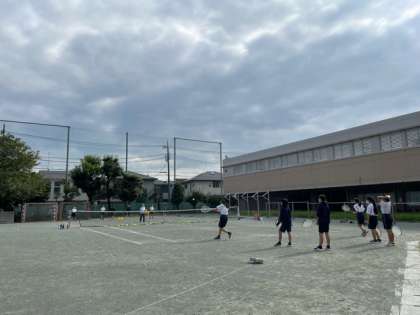 男子は2箇所に分かれて練習。顧問の先生とミニラリーをしていました。少し打たせてもらったけれど、一定の場所に返してラリーを続けるのは大変。何度かラリーが続いたものの、最後はホームランでした。やっぱり積み重ねの練習て大切ですね。勝手なイメージですが、テニスって華やかで力強くてカッコいい。特にカット気味に斜めにラケットを使って打ち返すところが素人にはマネできないです。来年の三年生を送る会では先生たちで打ちまかしましょう!という顧問の増子先生からのお誘いを間に受けて、イメトレ頑張ります!(岩崎)
