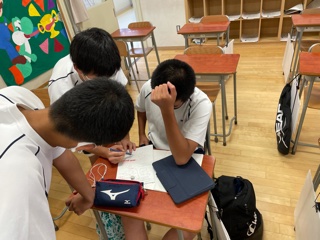 数学の授業後の教室では分からなかった問題を教え合う姿が見られました。登校組ならではです!