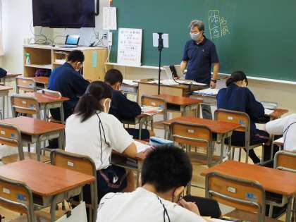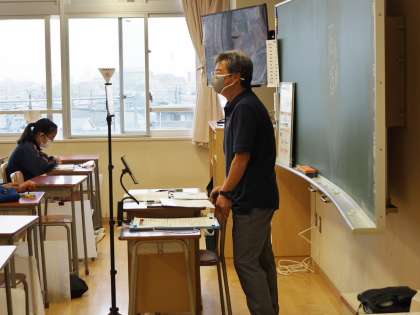 今日の2校時は、一昨日の学校日誌で若手の先生にレクチャーを受けている画像が載った国語の先生による「初オンライン」授業です。目の前にタブレットがあるので、何となく落ち着かない様子でしたが、そこはベテランの先生。すぐに慣れ、本領発揮です。