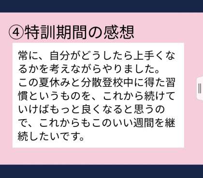 分散登校を機に始めたリモート部活も今日が最終日となりました。最初はマイナス面が多いと思いましたが生徒の感想を読むと案外自分と向き合えた良い時間だったと思います。