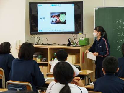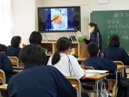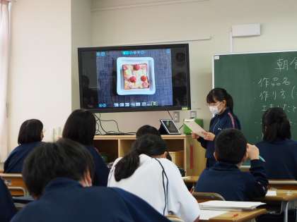 隣接するクラスでは、それぞれのタブレットで作った「朝食クイックメニュー」のお披露目中です。それにしても、撮影されたメニューたちの画像の美しさ、作ったものの完成度の高さには目を見張ります。