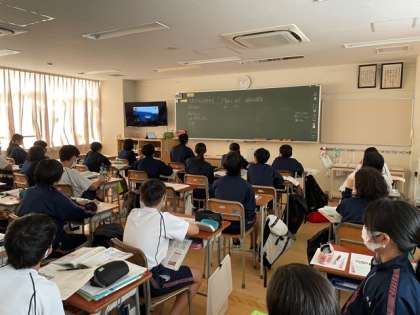 二年生の地理では動画から世界で活躍する日本の製品を観ました。「おーっ」と生徒たちが反応。やっぱり一人で観るよりいいなと思いました。