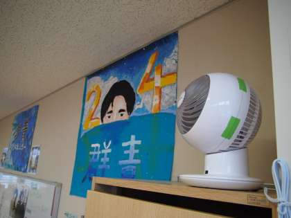 本格登校2日目の朝。7時過ぎから各クラスのサーキュレーターは全開です。あれ?貼ってある緑色の養生テープは?主事さんに聞いてみると、夏休み期間中に分解してファンを掃除していただいたとのこと。毎日全開で回っている教室のファンは結構汚れていたことを聞き、主持さんに感謝するとともに、あらためて感染症対策のうち、換気の重要性を認識しました。