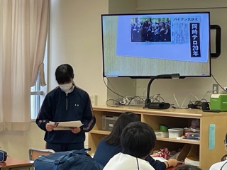 今日のNIEタイムでは「同時テロ20年」の記事が発表されました。生徒にとっては歴史上の出来事になっていることに驚いてしまいました。