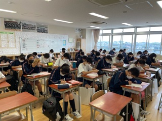 2年生は毎週(水)の朝は読書ではなく社説の要約をしています。新聞に触れながら積み重ねで読解力を養っています!