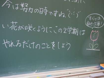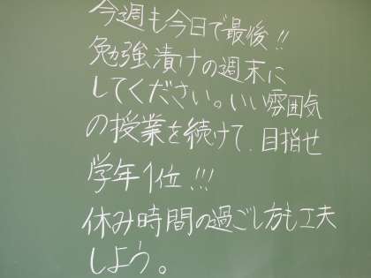 特に10期生にとっては「あと○日」が気になる中間考査。担任からの積極的なアドバイスに応えられるかなあ。でもそれには、こんなイラストを描いてみる気持ちのゆとりも必要ですね。