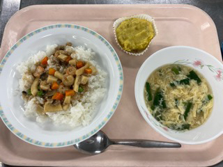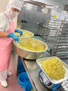 今日の給食のデザートはスイートポテトです。朝晩涼しくなり、秋がやってきました。さつまいもの美味しい季節ですね!美味しく食べられますように。
