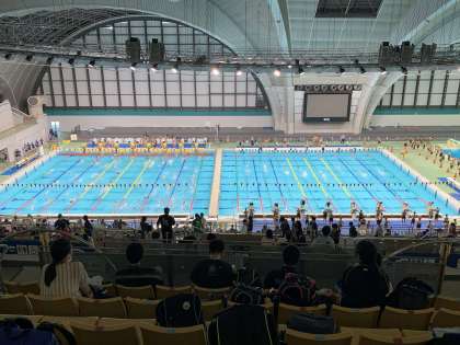 今日、明日の2日間、東京辰巳国際水泳場で都大会が開催されます。