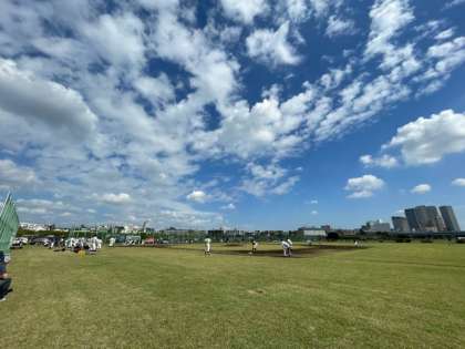 今日は二子玉川緑地で野球部の試合がありました。ユニフォームを着ているとぐんと大人びて見えます。フナキボ野球部は力強いピッチングに加え、守備も声を掛け合い、バッティングもみんなでつなぐ全員野球でした。控え選手もランナーコーチャーにベンチの声出し、道具の移動などでしっかり活躍。見事勝利をおさめました。応援できて嬉しかったです。優勝旗と賞状を手にした勇姿が光っていました。