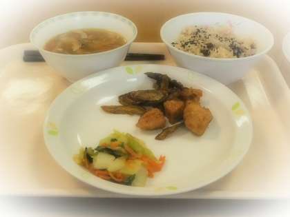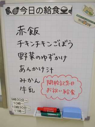 フナキボのお誕生日ということで、今日の給食はお赤飯です。きちんとごま塩も振りかけてありました。やったー!