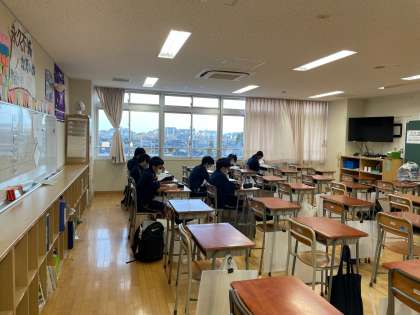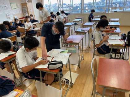 2年生の自習教室と質問教室の様子です。技術科の毛塚先生も数学の質問に答えていました。すごい!