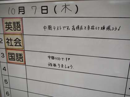 どんよりとした雲ですが、そんなことは気にせず「高得点めざして」ください。机と机の間隔もいつも以上に広くとっている考査仕様になっています。