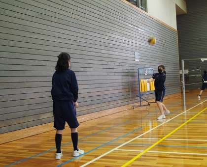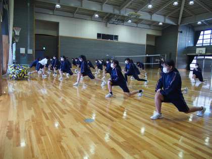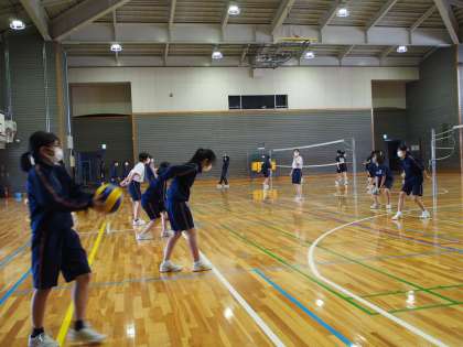 6時間目に体育館をのぞくとバレーボールをやるところでした。体操から手を抜かないところはさすがフナキボ生。