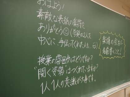 2学期も半ばにさしかかり、3月の合唱に向けての準備もボチボチ始まっています。昨日ホームページに出ていた楽譜を作ってくれた生徒への感謝のメッセージです。