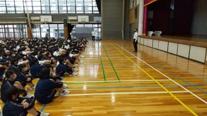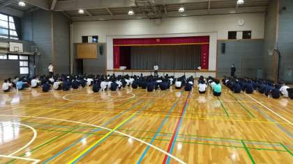 1年生の学年集会の様子です。学校生活やタブレット端末の使い方、専門委員会や生徒会本部役員の紹介を行いました。2学期後半も頑張りましょう。(たむら)