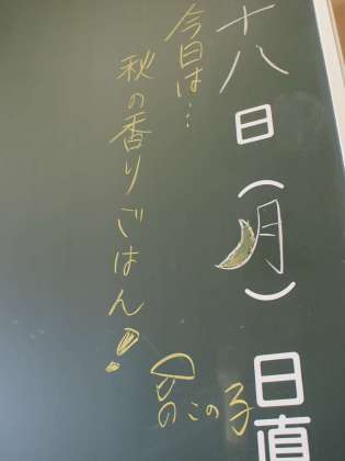 それぞれ教室でも秋の深まりを感じる一場面。もちろん、給食でも…。