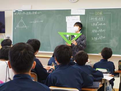 「三角形の角の性質を説明しよう」が今日の課題です。