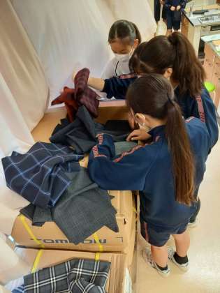 トンボ学生服さんから無償で提供していただいた学生服の余り布を使って、自分の作りたいものを製作しています。