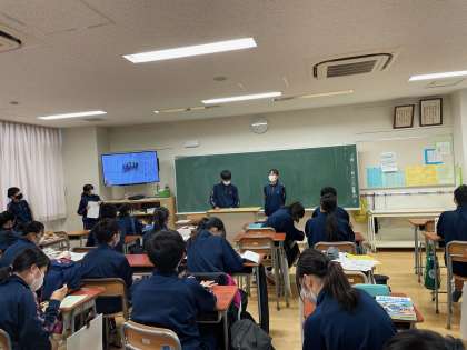 学活で学級委員から「最近の授業はみんな発言を頑張っていて良いと思います」と話がありました。自分たちの力で変えていこうとする姿勢がとても良いと思います。