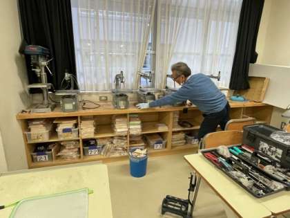 二学期に入り、1年生も2年生も電動糸のこを使用し始めました。しばらくメンテナンスされていなかった為、音や緩みが気になっていたので修繕を依頼したところ、すぐに来てくださいました。さすがプロの技!音も安定感も全く違う。細かい部品まで綺麗にしてくださいました。内部に入り込んだ木屑も取り除き、高級油をさしてくださったので、しばらくは安心して使えそうです。