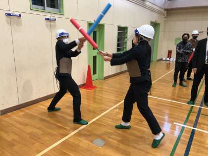 保健体育科は三宿中にて、簡易的な用具を使用した剣道の研究発表と実技演習でした。
