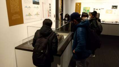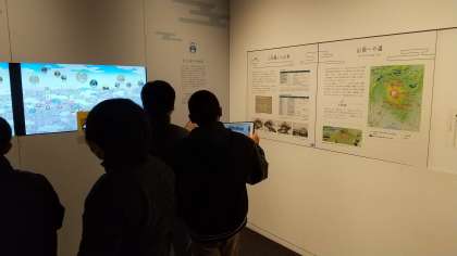 ふじさんミュージアムの様子です。展示などを見学しています。(田村)