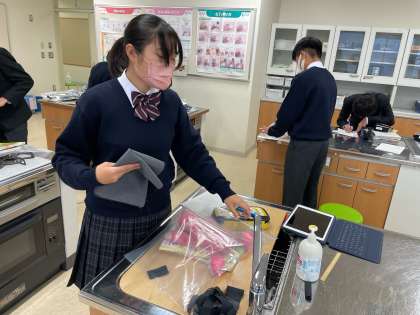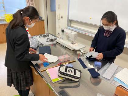 今日は6時間目の家庭科の授業に参加してみました。みんな思い思いの作品を作っていました。私はエコバッグにすることにしました!