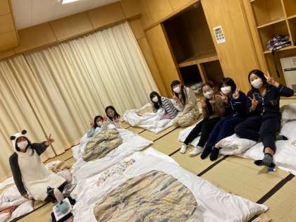 就寝時間を守ろうと頑張って動いていました! 眠そうな人もいれば、この時間に普段寝ないです〜と言っている人も!(水巻)
