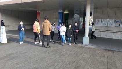談合坂に到着しました。これから学校に向かって出発します。(田村)