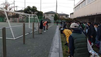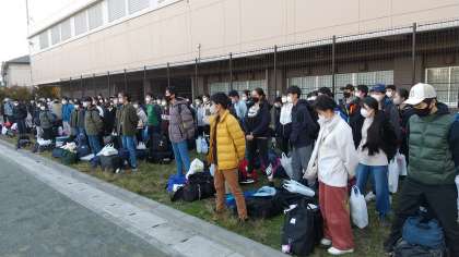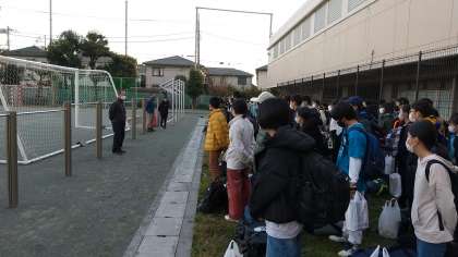 学校に帰ってきました。学校で帰校式を行ってます。2泊3日お疲れ様でした。(田村)