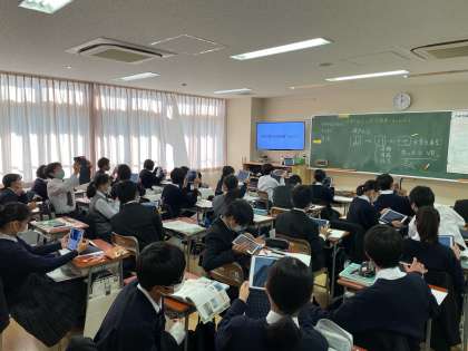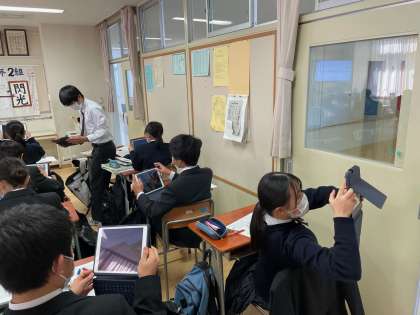 二年生の地理では中部地方の学習を進めています。北陸が豪雪地帯であることを感じるため、雪の大谷をVRで確認しました。