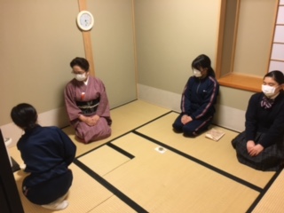 今日は人数も少ないので、一階にある和室を使って、茶道部のお稽古をしました。気持ちも引き締まり、シャキッとお点前出来ました。(大橋)