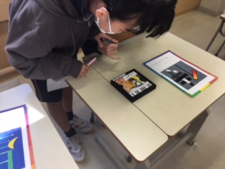 アイデアデザイン→木に転写→電動糸のこでカットと線彫り(彫刻刀)→紙やすりの磨き→色づけ