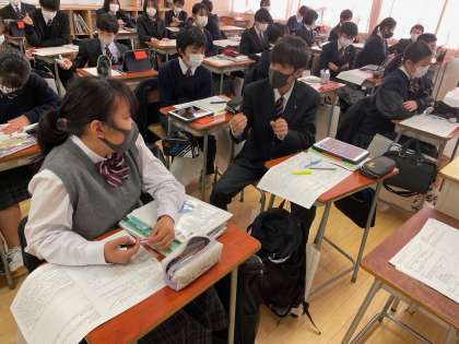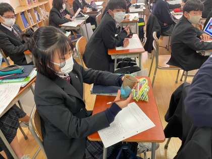 二年生の地理では中部地方の工業の学習を進めています。九谷焼を見て北陸の地場産業を感じて、ペアで授業の振り返りをしました!