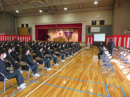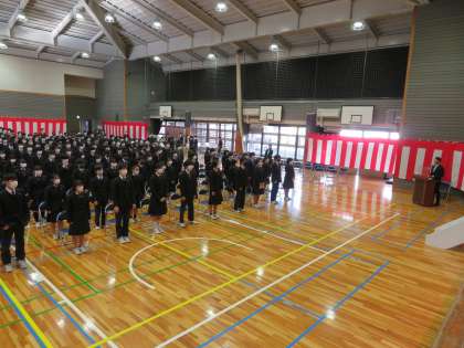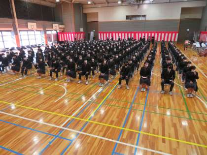 今回の開校10周年記念式典は、会場の密を避けるために、体育館の在校生は3年生のみになります。各教室で参加している1・2年生の分まで、フナキボ生の代表としての姿勢を見せるために、礼法の確認を行っています。決めるところをしっかり決めるところは、さすが3年生です。(田村)