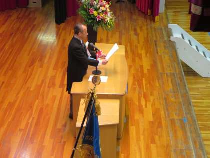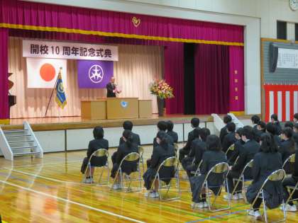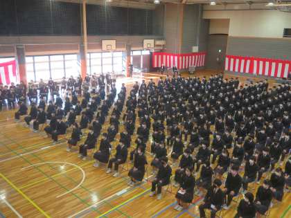 本校校長の式辞では、本校創立の歴史、本校に赴任されたときの思い出、保護者や地域の方への感謝を伝えさせていただきました。(田村)