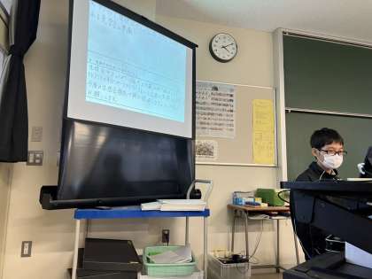 今までは、各委員会の反省や目標などが書かれた紙を生徒会役員が人数分印刷をしていましたが、今回の中央委員会では、ロイロノートを使用して、ペーパーレス化を試みました。