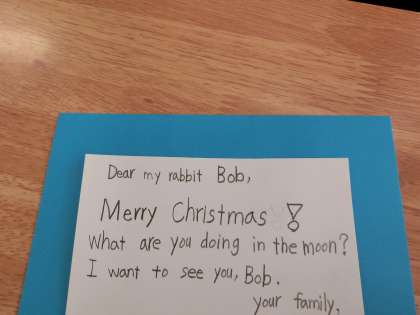 こちらも和やかな雰囲気の中、カードを作成しています。天国にいるうさぎさんに、天国にいるお友だちに宛てて、カードを作成している人がいて、胸にぐっとくるものがありました。各自2枚を作成していて、一つは自分で直接書いた人に手渡し、もう一つは来年2月の展示発表会でお披露目予定です。それぞれの思いを感じるとてもステキなカードばかりです!どうぞお楽しみに。(水巻)
