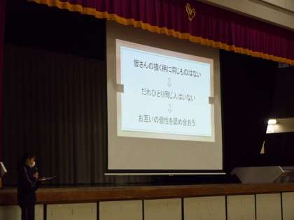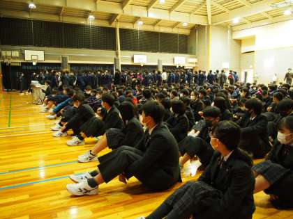 今朝は生徒会朝礼がありました。10期生と11期生が体育館へ。いつものようにチャイムがなる前には静寂となりました。今日は3学期へ向け、生徒会の新しい取組みが発表されました。