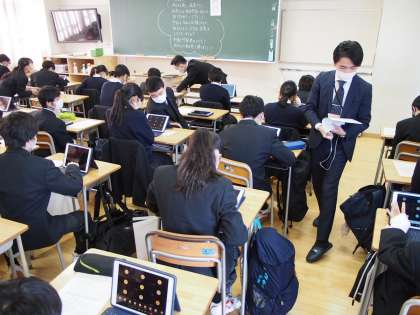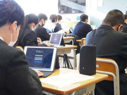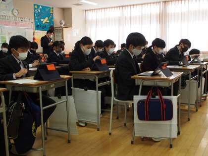 生徒会朝礼が行われていたころ、12期生の教室では、通信環境を改善するための負荷テストを行っています。こういうところにも、まじめに取り組むのがフナキボです。