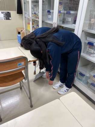 美術部の活動が終わると、当番制で掃除を行います。その後さらに残ってひたすら掃除をしてくれる2年生発見。毎回のように、細部まで掃除機してくれます。