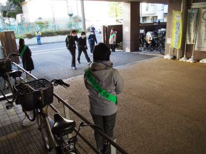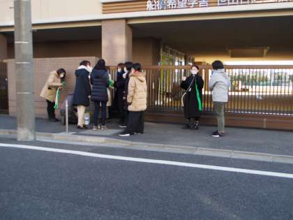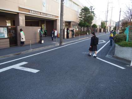 ‘極寒’の西門でたち続け、生徒にあいさつをしてくださる保護者の方々です。今日は、ことのほか多くの方が参加してくださいました。ありがとうございました。