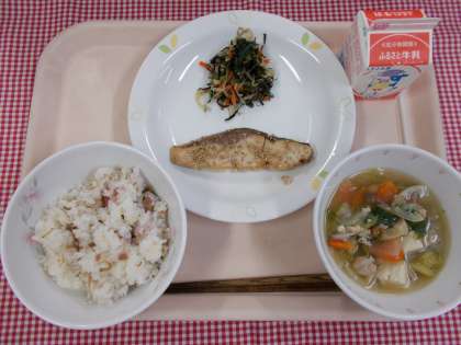 今日の給食は、和食の一汁二菜の献立です。