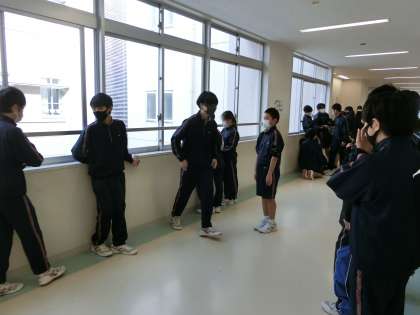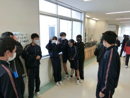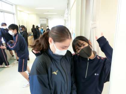 昼休み、廊下で違うクラスの人と交流している様子があります。一番上の写真、男子同士で告白の練習をしていました(笑) (水巻)