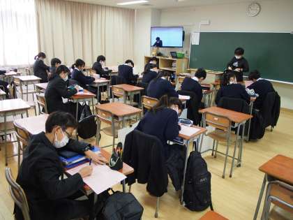同じフロアーで共通の授業を進めていることもあり、1時間目から静かなスタートです。これも、フナキボではいつものことなのですが…。みな集中しています。
