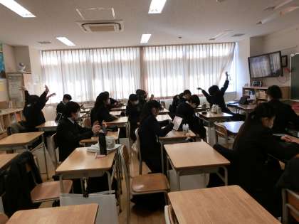 ロイロでじゃんけん、かぶらなきゃやーよ(お題に対してみんな同じ答えとなるよう考えて回答する)の後は、この先生だ〜れだ?で、先生たちの子どもの時の写真を見ては大いに盛り上がりました。教室の中では笑い声が響いていましたが、オンライン選択の人も楽しく過ごせたでしょうか。ネットを介してでも、みんなで一緒に笑えるっていいなと思える時間でした。(水巻)